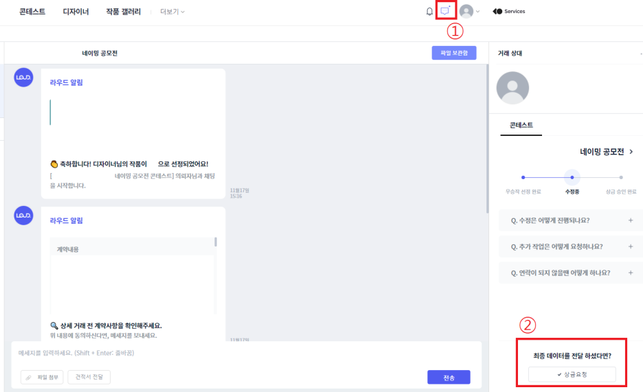 의뢰자에게 상금 요청을 할 수 있습니다.