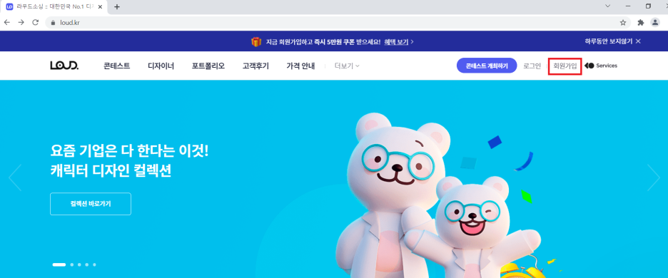 사이트에 들어가시면 우측 상단에 회원가입 창이 있는데요,