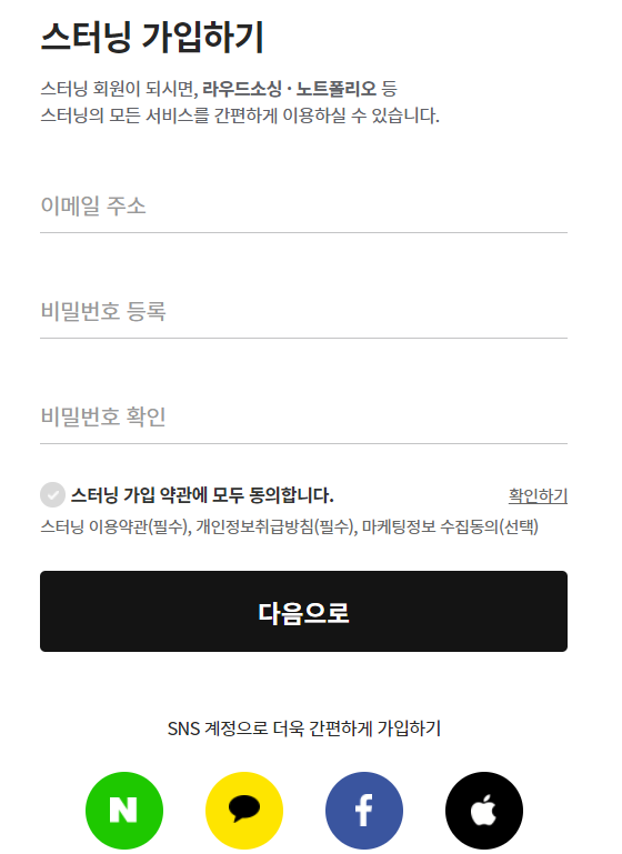보시면 알겠지만 간편 계정으로 가입도 가능하니, 참고하시면 됩니다.