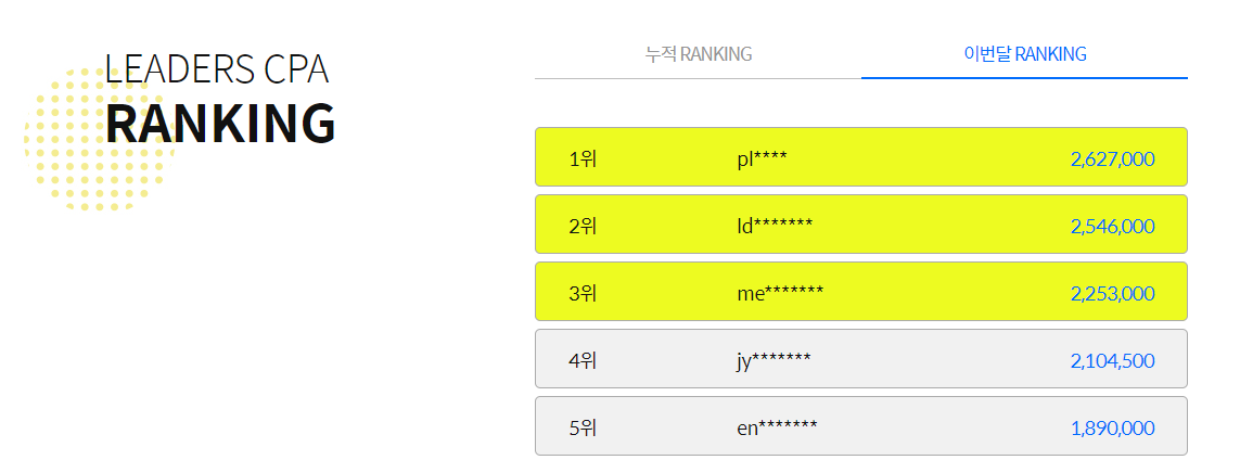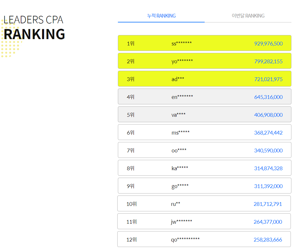 ③ 리더스 CPA 1등 파트너의 높은 누적 수익금액
