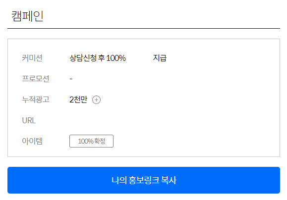 50%만 가져가게 되니, 리더스 CPA 100% 확정 캠페인을 이용하는게 이득이겠죠?