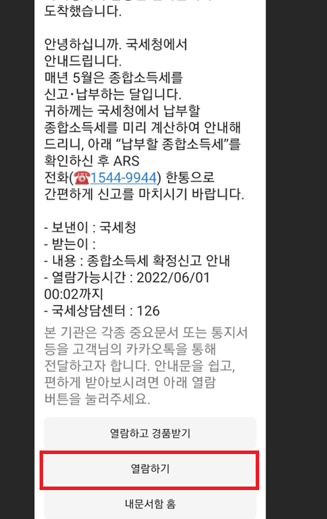 갑자기 국세청으로부터 카톡이 와서 뭔가 싶었습니다.