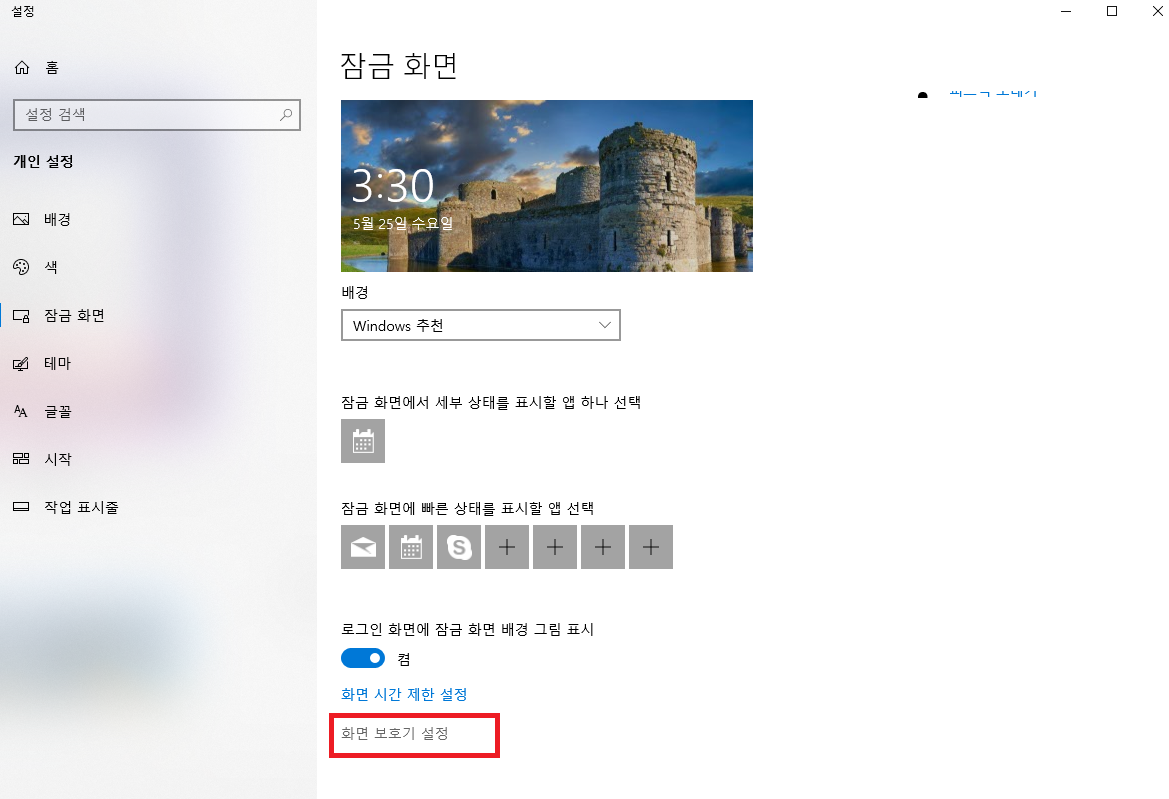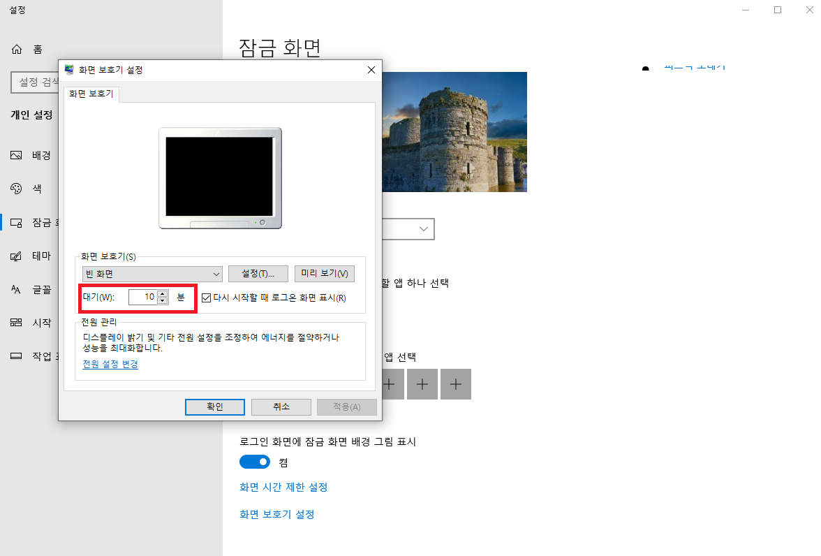 윈도우10 컴퓨터 화면보호기 시간 설정 방법
