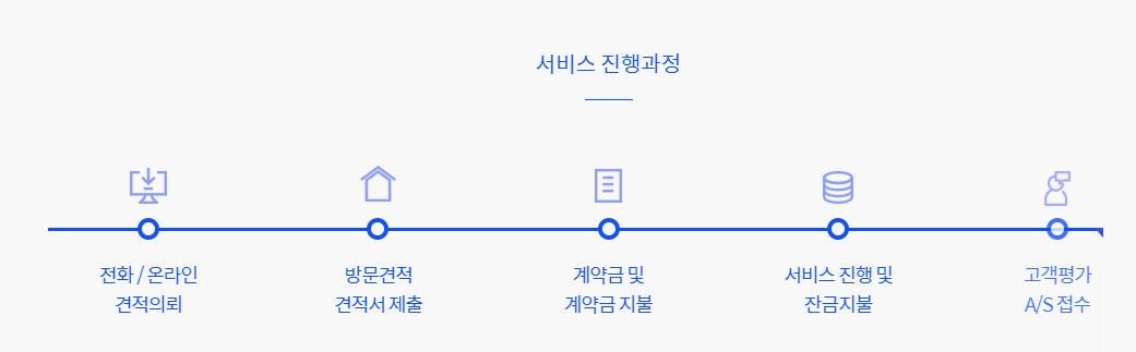 인터넷상으로 이루어지는 이사 서비스 진행과정은 아래와 같습니다.